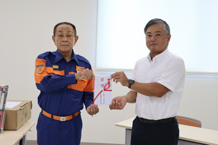 マンホールトイレや折りたたみリアカー、テント、テーブル等を地元自治会へ寄付しました。